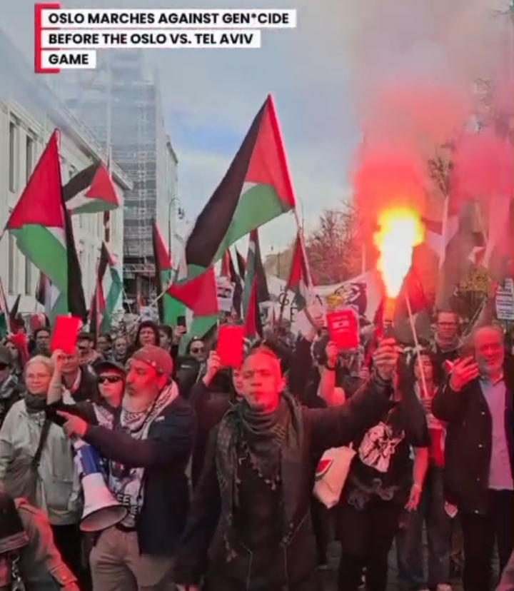 A Oslo ce samedi, des milliers de Norvégiens ont manifesté pour exiger l’exclusion de l’Etat génocidaire de l’UEFA et de la FIFA.