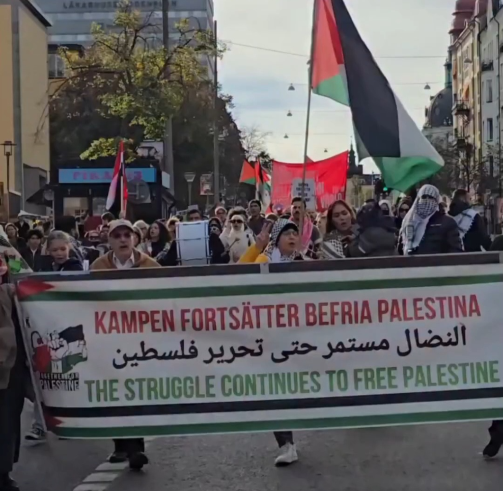 Manifestation dans les rues de Stockholm pour appeler à la libération de la Palestine de l’occupation israélienne.