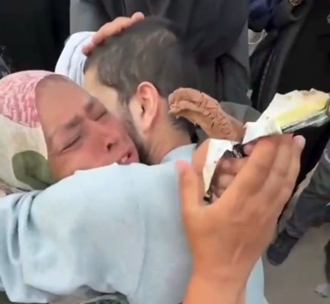 Pourtant, alors qu’il montait les escaliers de sa maison à Gaza, il a été accueilli par sa femme qui courait dans ses bras, entouré de ses enfants et de ses parents, tous vivants, attendant et submergés par l’incrédulité et la joie.