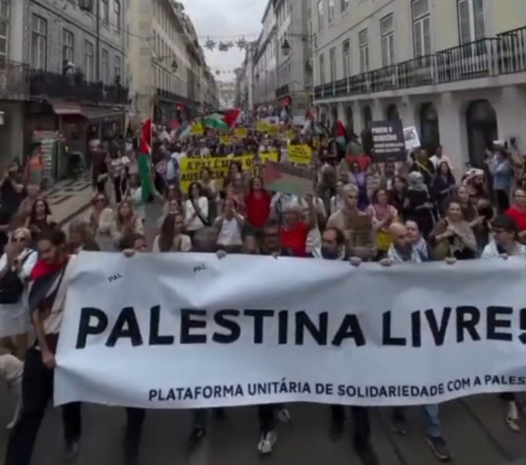 Des milliers de manifestants ont défilé dans les rues de Lisbonne, au Portugal, dimanche réaffirmant leur soutien au droit du peuple palestinien à l’autodétermination et appelant à la fin de l’occupation israélienne et du génocide à Gaza.