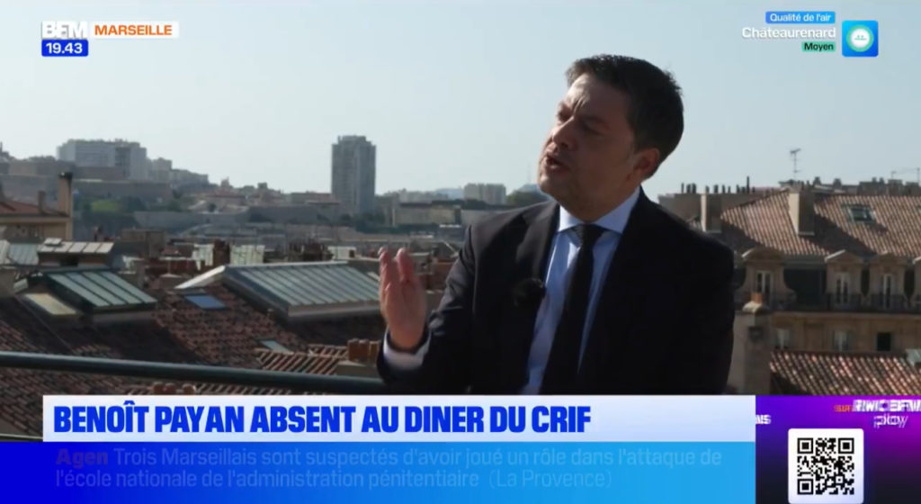 Benoit Payan il une bonne raison d’avoir manqué le dîner du CRIF à Marseille ? Oui, répond-il à BFM qui se permet de lui demander des comptes à ce sujet. Il ne veut pas entendre les partisans du génocide.