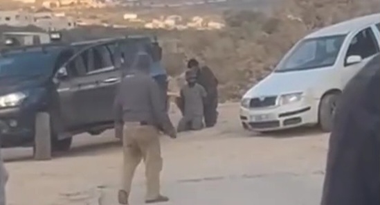 Vidéo de colons armés attaquant des familles palestiniennes alors qu’elles récoltaient des olives dans les terres de Deir Nidham, au nord-ouest de Ramallah