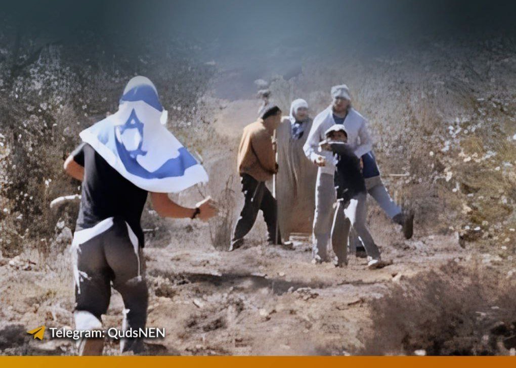 Vidéo de colons armés attaquant des familles palestiniennes alors qu’elles récoltaient des olives dans les terres de Deir Nidham, au nord-ouest de Ramallah