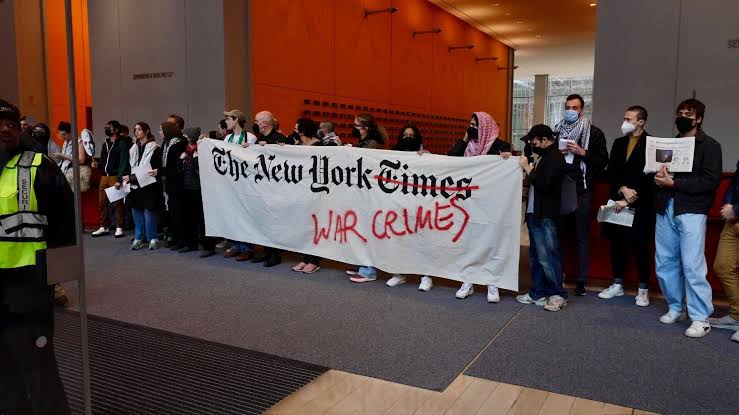 Plus de 300 écrivains et universitaires de renom viennent d’annoncer qu’ils boycottent le New York Times (débaptisé et désormais appelé New York Crimes), et ne contribueront plus par leurs tribunes dans le quotidien, en raison du parti pris anti-palestinien du journal et de sa couverture qui légitime le génocide israélien à Gaza.