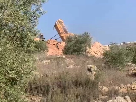 Des colons israéliens déversent leurs déchets sur des terres palestiniennes près de la ville de Turmus Ayya, au nord-est de Ramallah, en Cisjordanie occupée.
