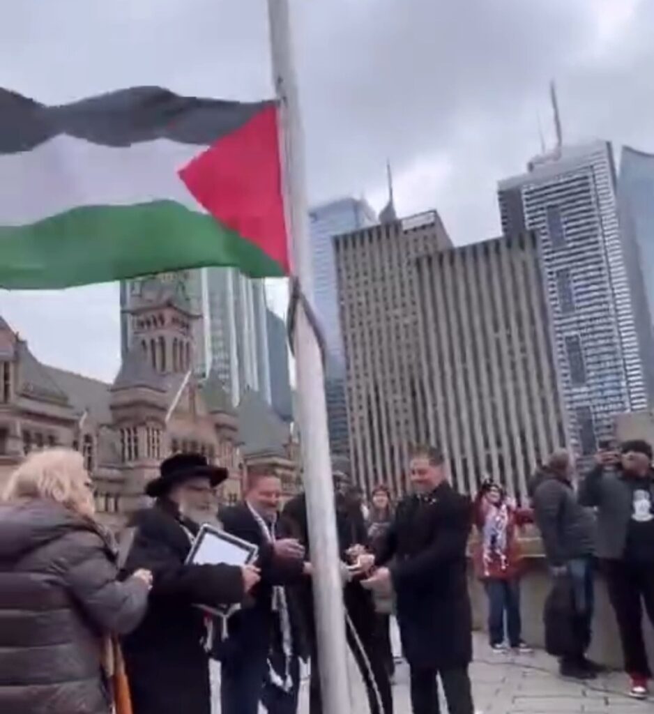 Des centaines de personnes se sont rassemblées lundi devant l’hôtel de ville de Toronto pour assister à la levée du drapeau palestinien, une première pour la plus grande ville du Canada depuis la reconnaissance de l’État de Palestine par le gouvernement en septembre.