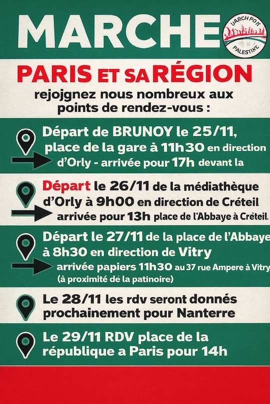 Des sionistes ont crevé, à Lyon, deux pneus du camion qui assure la sécurité des marcheurs vers Paris pour la marche de samedi prochain, 29 novembre.