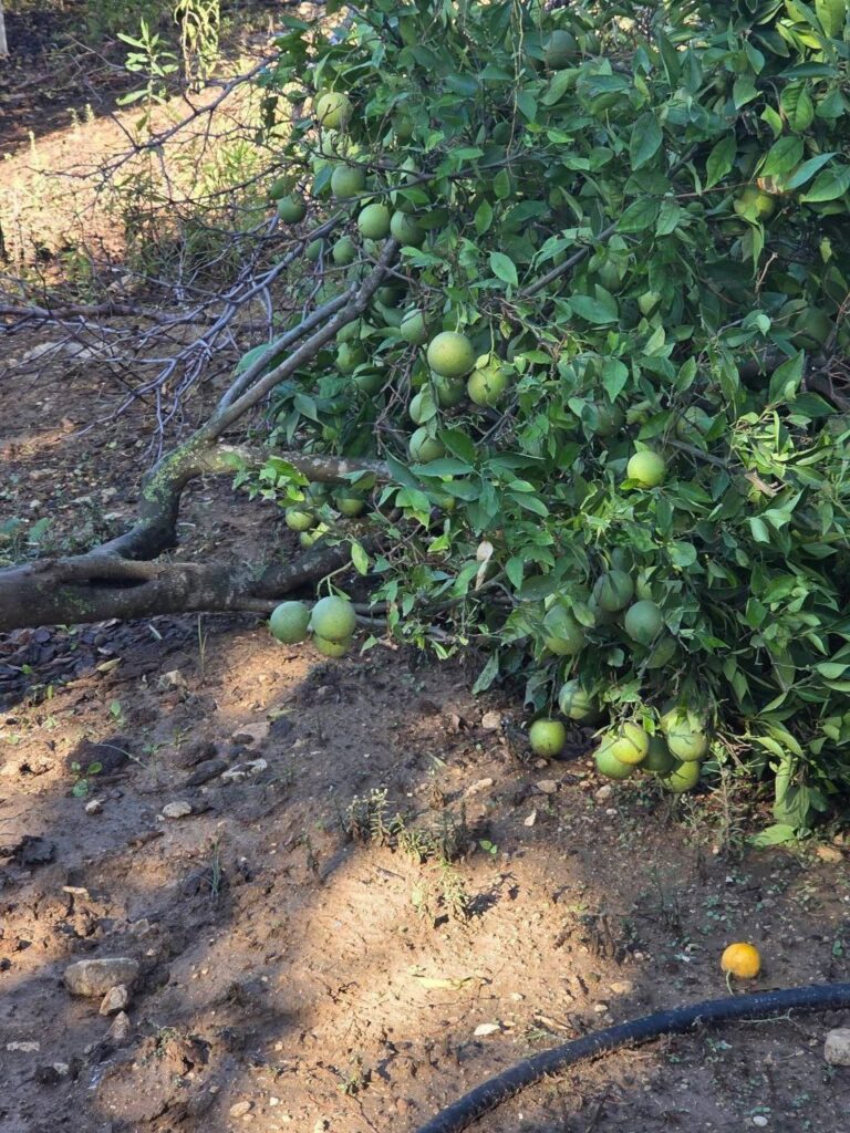 Des colons israéliens abattent des arbres fruitiers après avoir pillé un ranch palestinien près de la ville de Salfit, en Cisjordanie occupée.