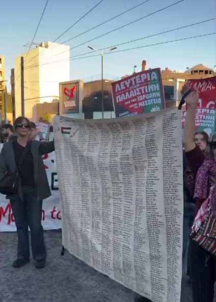 30 novembre 2025ACTUALITÉS, VIDÉOS URL has been copied successfully! URL has been copied successfully!Partagez: Ce samedi à Athènes, les manifestants ont mis en avant les noms de dizaines de milliers d’enfants et de bébés « terroristes », selon Israël. CAPJPO-Europalestine Article en PDF Partagez:
