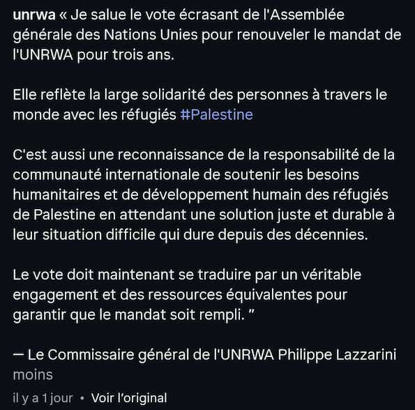 Ce devrait normalement être l’occupant qui assure le bien-être de la population occupée, selon le droit international. Mais cela n’a jamais été le cas en ce qui concerne Israël. Et s’il n’y avait pas l’UNRWA les réfugiés seraient laissés sans soins et sans éducation.