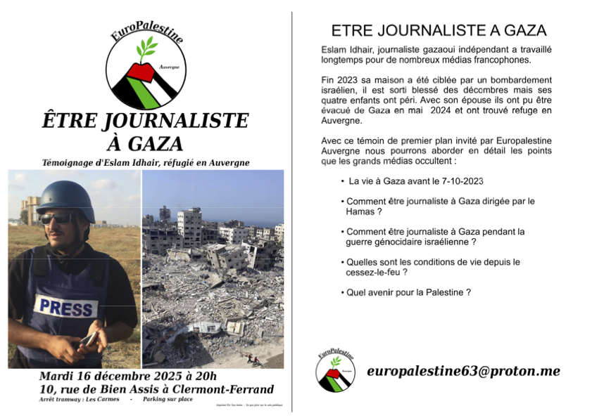 A CLERMONT-FERRAND : MARDI 16 DÉCEMBRE
