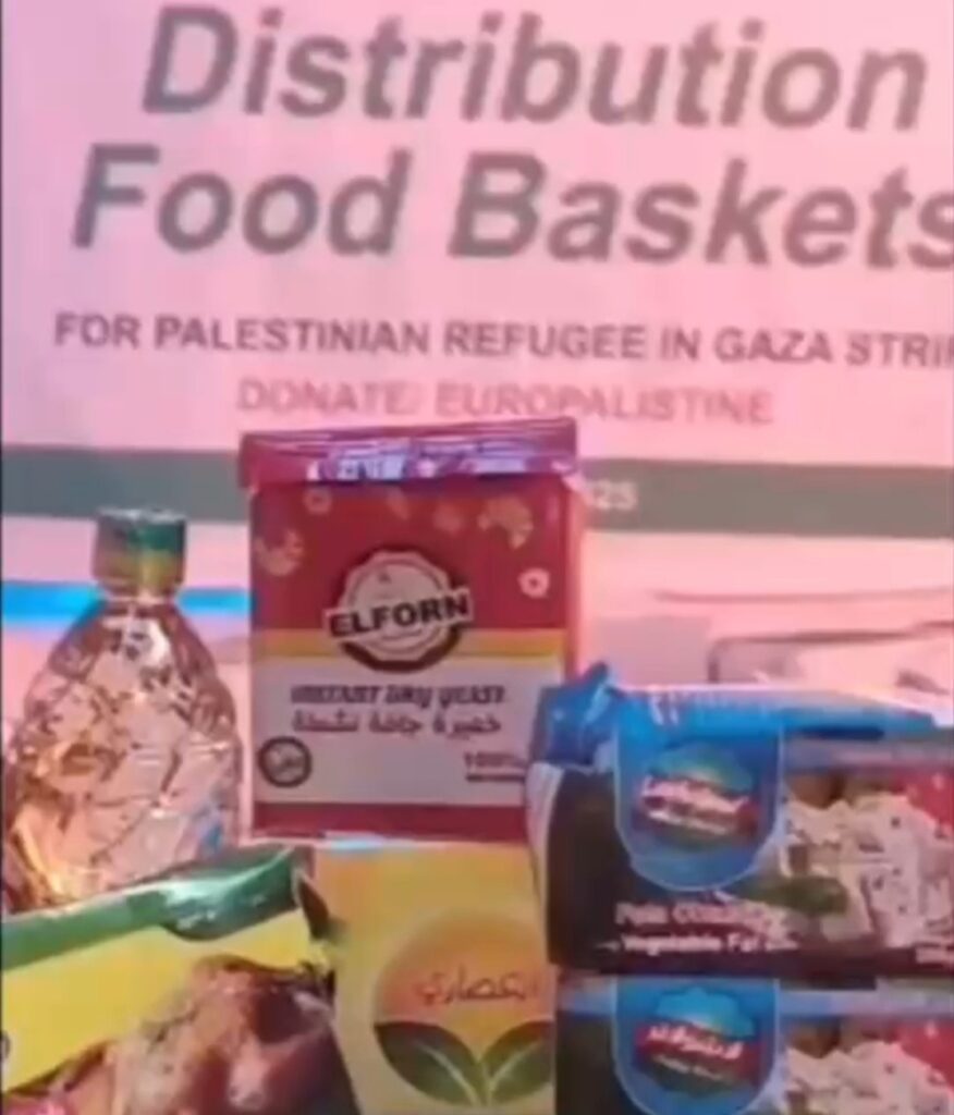 Ces colis contenaient : Huile de friture, riz, sucre, thé, dattes, levure, fromage jaune, labneh, haricots et pois chiches en conserve, viande hachée et autres produits alimentaires de base.