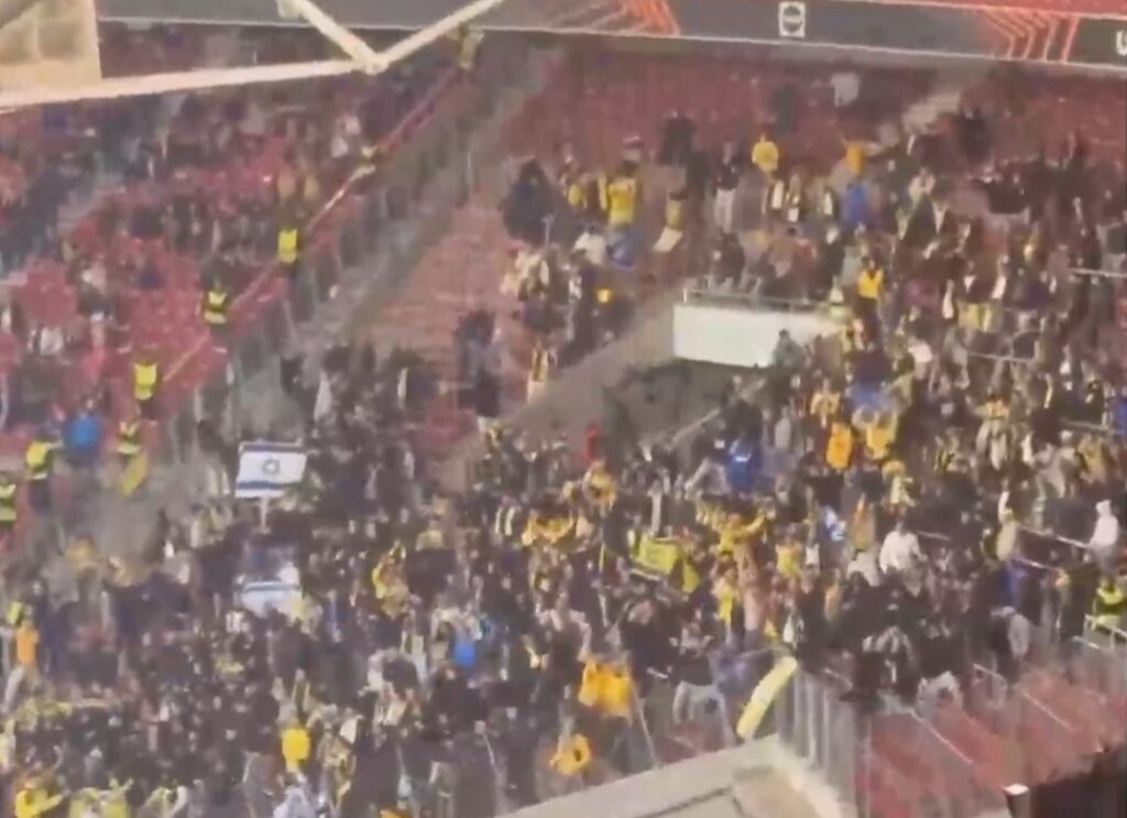 Ces slogans génocidaires ont été scandés par les supporters du Maccabi Tel Aviv vendredi lors de leur match à Stuttgart, en Allemagne, dont « Mort aux arabes », et « Nous violerons vos filles ».