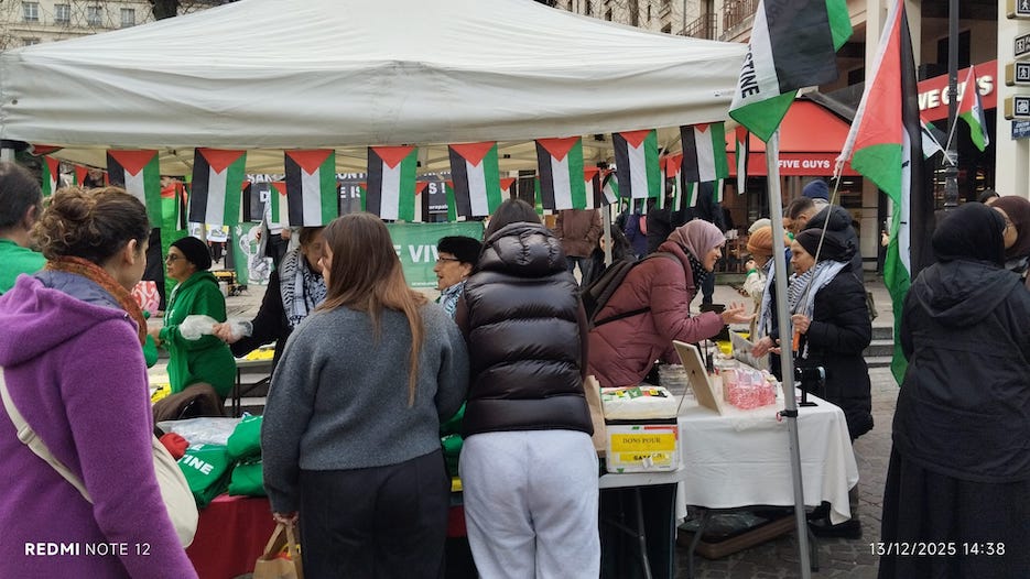 A la Fontaine des Innocents, samedi notre rassemblement a été l’occasion d’informer les passants sur la situation à Gaza, en Cisjordanie, la complicité de nos gouvernants, de nombreux médias, de la mise au pas des réseaux sociaux, mais aussi des nombreuses mobilisations et actions de résistance dans le monde.