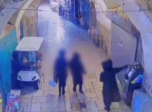 Dans une ruelle de la vieille ville de Jérusalem, un Israélien attrape et jette violemment un chat, qui ne lui avait rien fait.