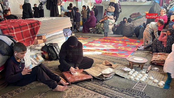 Dans le sud, plus de 120 familles qui n’ont plus de tentes sont hébergées dans ce qu’il reste de la mosquée Bilal à Khan Younès, vivant à même le sol, dans un contexte de pénurie extrême et de rigueur de l’hiver, après la destruction de leurs maisons par Israël.
