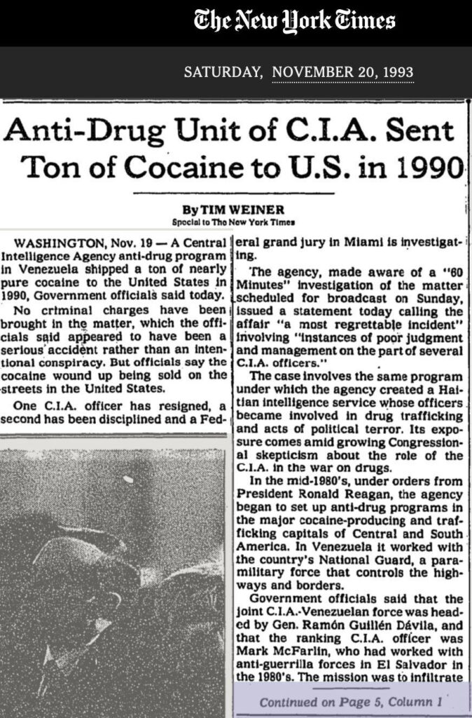 Mais il y a « mieux » encore, a déniché dimanche un internaute. En 1990, sous la présidence du Républicain George Bush senior, c’est carrément la CIA qui a organisé l’importation de plusieurs tonnes de cocaïne !