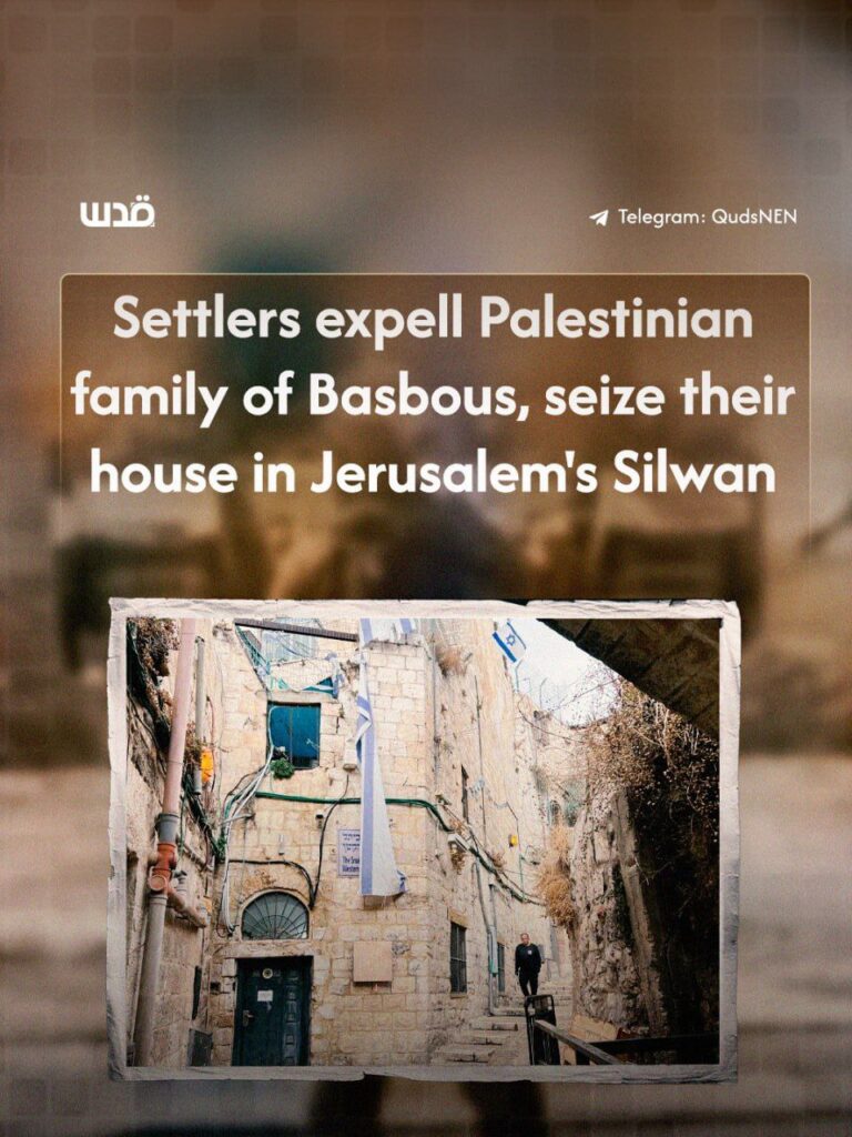 Des colons israéliens se sont emparés d’une maison appartenant à la famille Basbous après en avoir expulsé de force les habitants dans le quartier de Batn Al-Hawa, à Silwan, dans la partie de Jérusalem occupée.