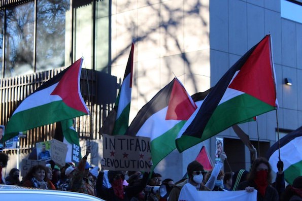 Et à Seattle, dans l’Etat de Washington, pendant que Trump se prenait pour le maître du monde, les drapeaux palestiniens et les banderoles soutenant la Palestine, étaient bien visibles !