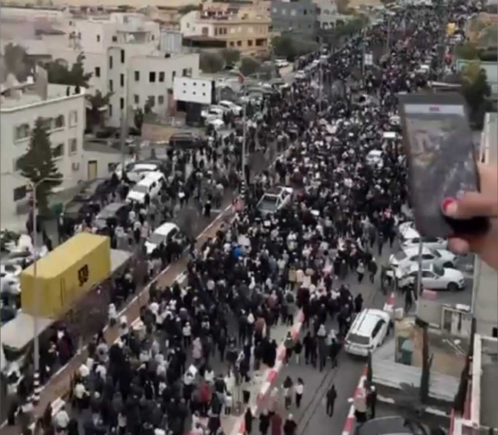Une importante manifestation nationale s’est déroulée jeudi à Sakhnin, rassemblant de nombreux Palestiniens ayant la citoyenneté israélienne. Les manifestants dénonçaient l’escalade de la violence et du crime organisé dans leurs communautés et protestaient contre l’inaction et la complicité des autorités et de la police israéliennes face à ce fléau.