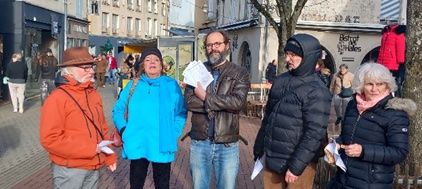 « Dix-sept personnes ont été verbalisées par la Préfète ! Mais … 2 d’entre elles, Margaret et Michel, sont poursuivies, et seule Margaret (à droite sur la photo) est convoquée », font-il remarquer