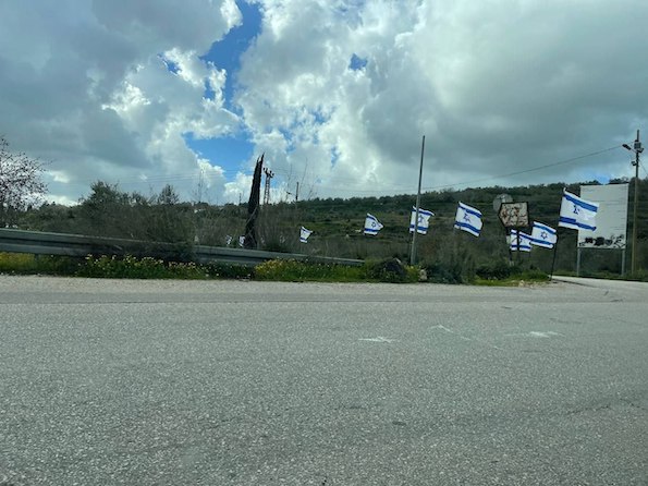Ils n’ont sans doute pas remarqué non plus les drapeaux israéliens sur la route à l’entrée d’al-Masoudiya, au nord-ouest de Naplouse ?