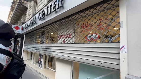 Sur le parcours de la manifestation, les escrocs partenaires des génocidaires, OPTICAL CENTER, ont préféré baisser leur rideau de fer avant qu’ont ait commencé à les dénoncer !