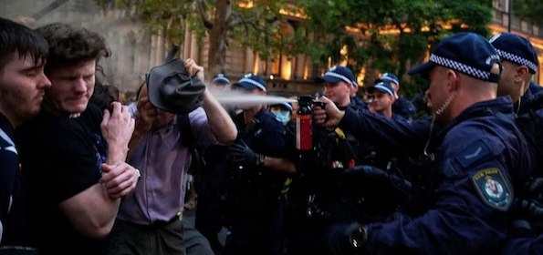 La police australienne a même dû agresser Abigail Boyd, membre du Conseil législatif de Nouvelle-Galles du Sud, pour avoir participé à une manifestation contre le génocide israélien.