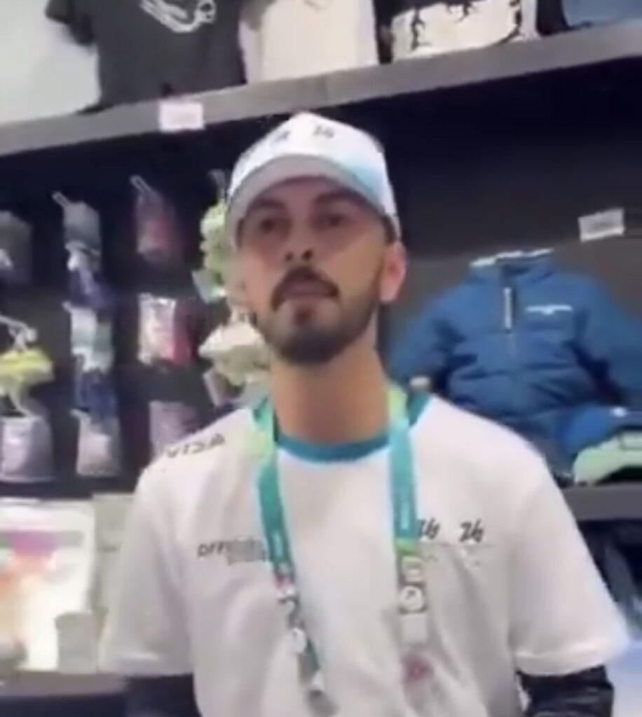 Dans une boutique olympique de Milan, des partisans du génocide ont brandi des drapeaux israéliens, mais un employé leur a tenu tête en répétant « Free Palestine », malgré leurs menaces