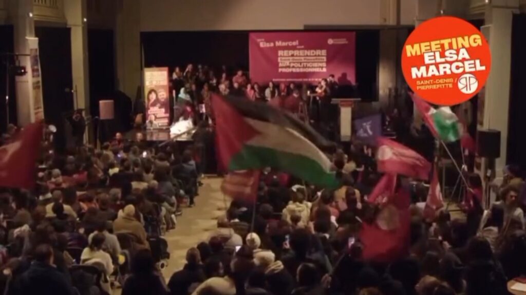 La Palestine très présente au meeting de Révolution Permanente lundi soir à Saint-Denis (03), où une belle jeunesse (500 personnes) a acclamé la candidature d Elsa Marcel aux élections municipales et une campagne comme on n’en n’avait jamais vue !