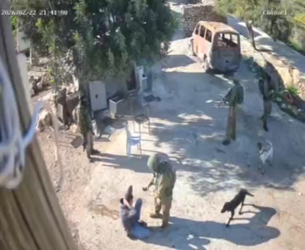 Des images de vidéosurveillance montrent des soldats israéliens attaquant deux Palestiniens, dont une personne âgée, à Khirbet al-Marajim, près du village de Duma, au sud-est de Naplouse.