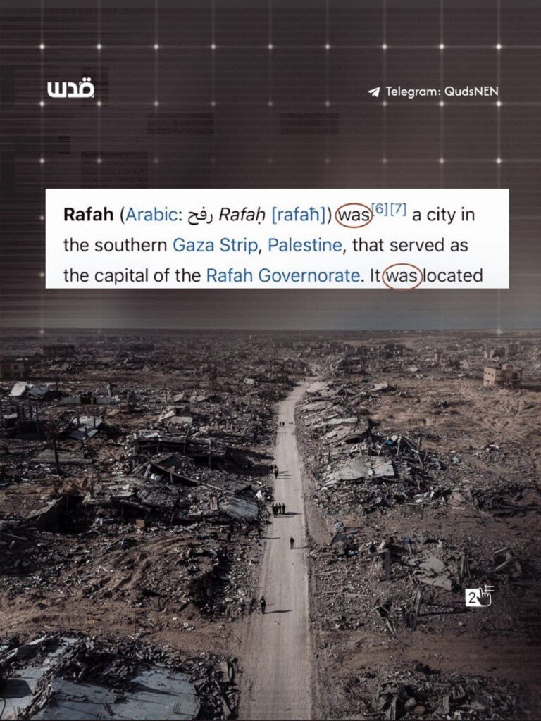 Des modifications apportées à Wikipédia dans sa version en anglais ont suscité des critiques après que plusieurs villes de la bande de Gaza ont été décrites au passé, en utilisant « was » au lieu de « is », le site rayant de la carte des villes victimes du génocide israélien.