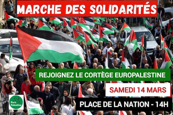 12 mars 2026ACTUALITÉS, AGENDA, POUR AGIR URL has been copied successfully! URL has been copied successfully!Partagez: Rejoignez nombreux-se, ce samedi à 14 H, le cortège Europalestine à Paris, place de la Nation à 14 H! CAPJPO-Europalestine Article en PDF Partagez:
