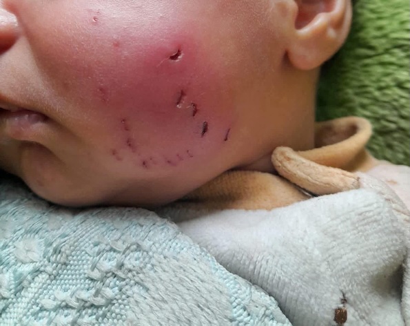C’est de Gaza, que l’on nous envoie cette terrible photo d’un bébé mordu jeudi par un gros rat dans la tente où il dormait à Deir El Balah.