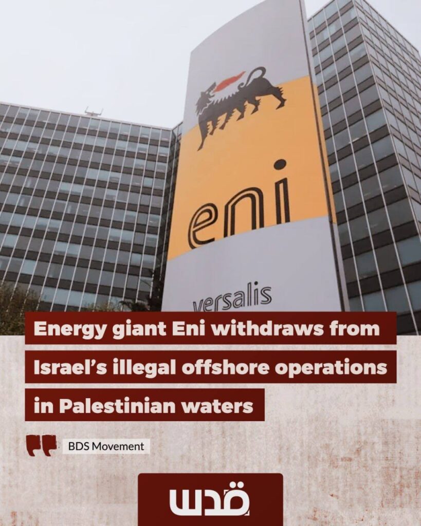 BDS : ENI, le géant pétrolier italien se retire d’un consortium avec Israël