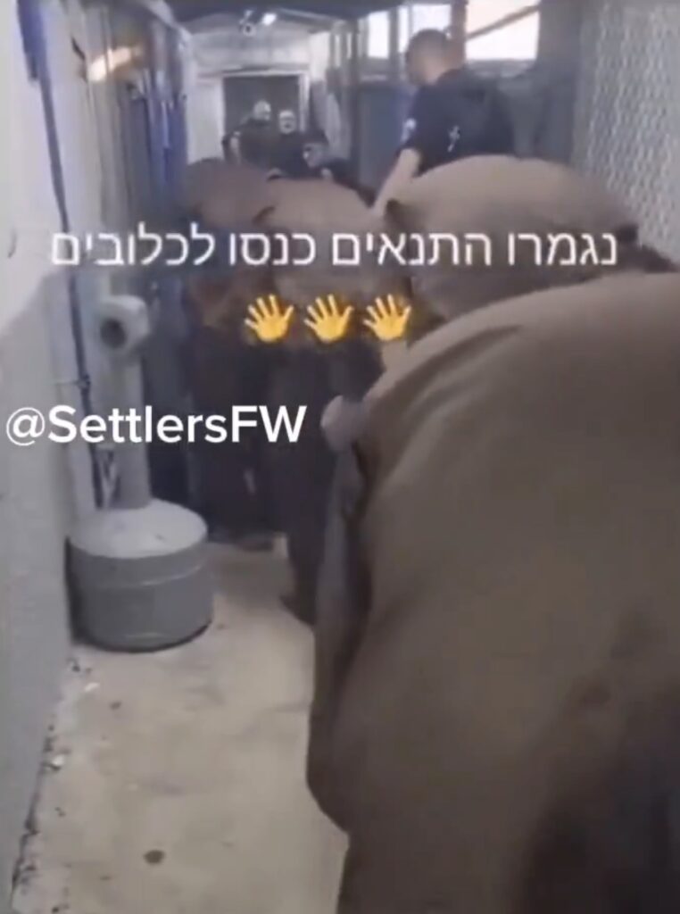 Une vidéo récemment diffusée montre des détenus palestiniens soumis à des conditions de détention inhumaines. Un texte en hébreu apparaît à l’écran : « C’est fini, entrez dans les cages ! »