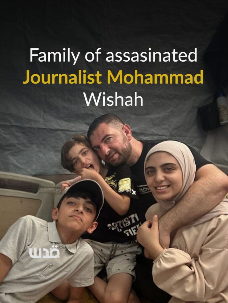 Mercredi soir, Mohammad Wishah, correspondant d’Al Jazeera Mubasher, a été tué par un drone israélien à Gaza. Les forces aériennes israéliennes ont pris pour cible son véhicule et l’ont tué au rond-point de Nabulsi, à l’ouest de la ville de Gaza.