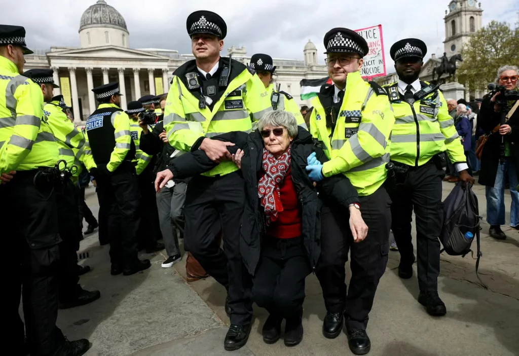 Les manifestant(e)s, rassemblés sur la célèbre Trafalgar Square de la capitale, arboraient notamment des pancartes où il était marqué « I oppose genocide, I support Palestine Action » (« Je m’oppose au génocide, je soutiens Palestine Action »).