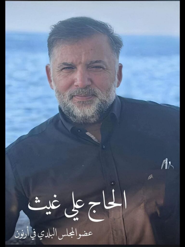 Hajj Ali Abdul Latif Gheith, membre du conseil municipal d’Arnoun, a été tué lors d’une frappe aérienne israélienne contre la ville de Kafr Tebnit, au sud du Liban.