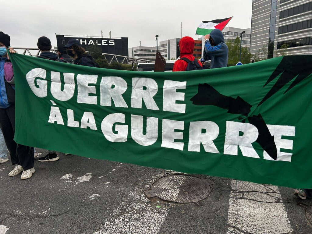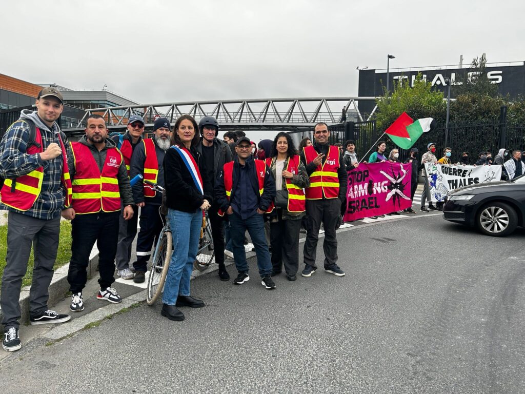 Des militants de plusieurs organisations ont bloqué ce lundi matin le rond-point qui amène à l’usine Thalès en région parisienne.