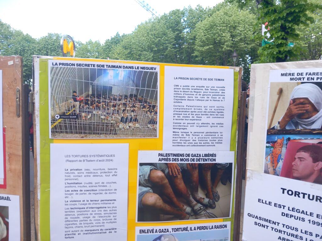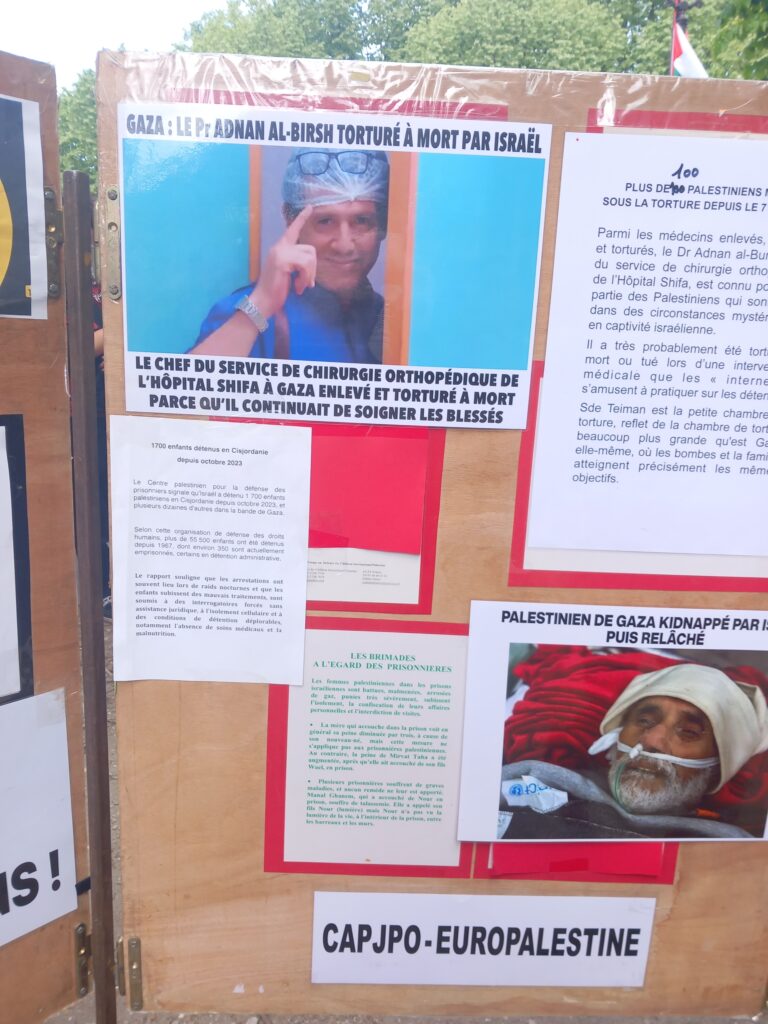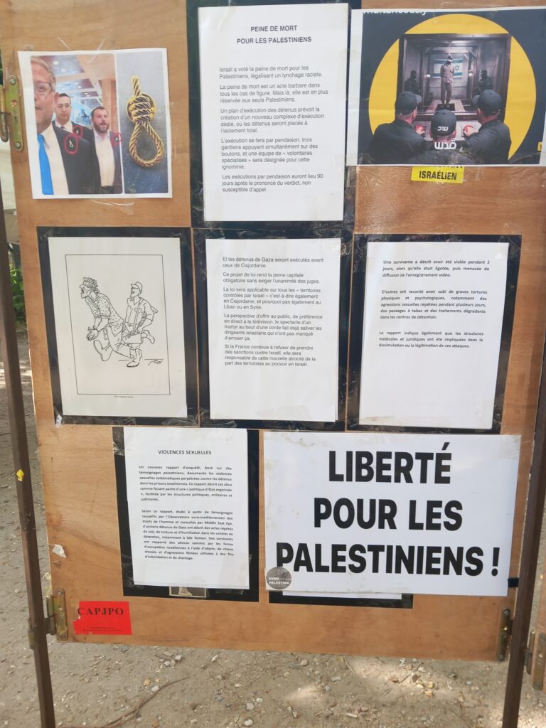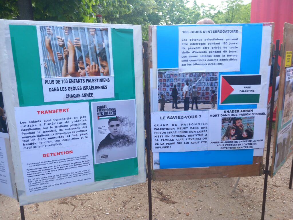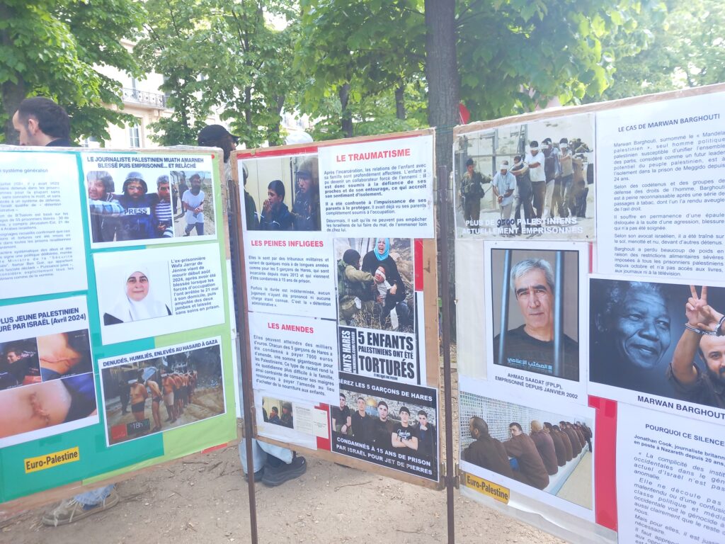 En plein rassemblement contre la loi Yadan, des centaines de personnes ont pu prendre connaissance de la situation des otages palestiniens dans les geôles de l’occupant israélien