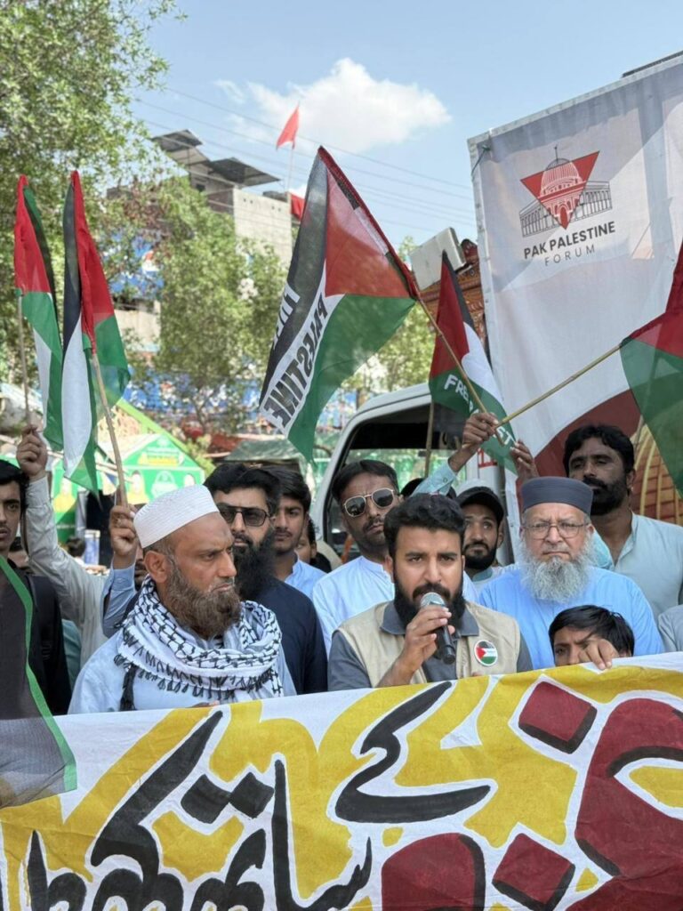 Le cinquième jour des mobilisations pro-palestiniennes, une grande marche a lieu à Kamoke, au Pakistan, en solidarité avec Gaza.