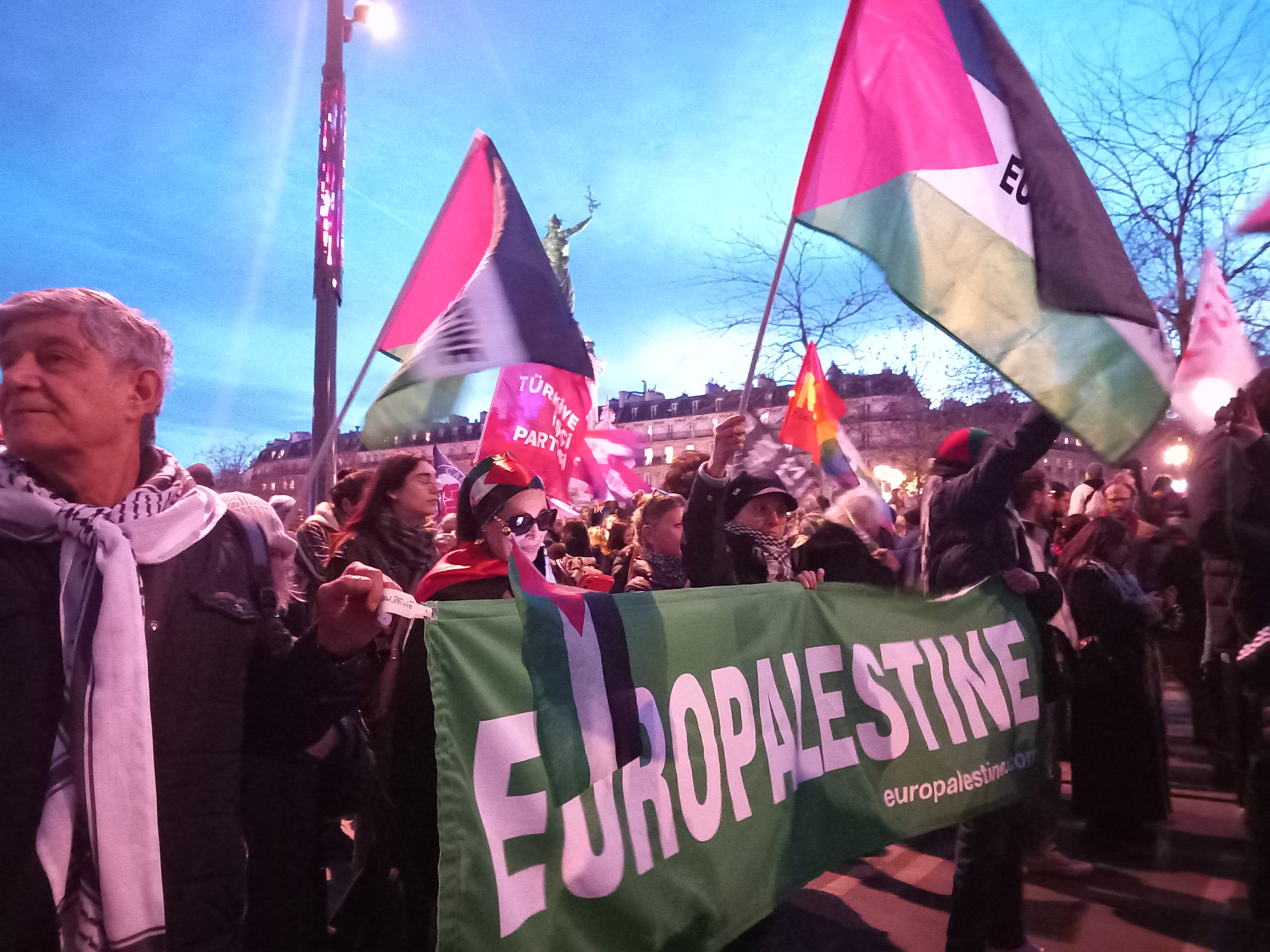 Une manifestation dynamique ce jeudi soir à Paris, à l’occasion de la journée internationale de solidarité avec les sans-papiers, exploités et réprimés. CAPJPO-Europalestine