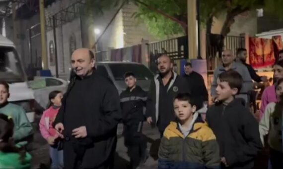 Malgré la noirceur de la situation à Gaza, des enfants chrétiens palestiniens se rassemblent à l’intérieur de l’église catholique de la Sainte Famille avec leur curé, pour chanter des chants de Noël et se réconforter un peu. CAPJPO-Europalestine