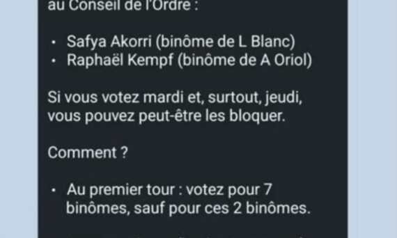Les 2 et 4 décembre dernier, le Barreau de PARIS procédait à l’élection par tiers des membres du Conseil de l’Ordre. Le taux de participation est toujours très faible, mais cette année, un incident à animé ces élections. Un avocat n’a rien trouvé de mieux que de stigmatiser deux de ses confrères candidats aux élections, […]