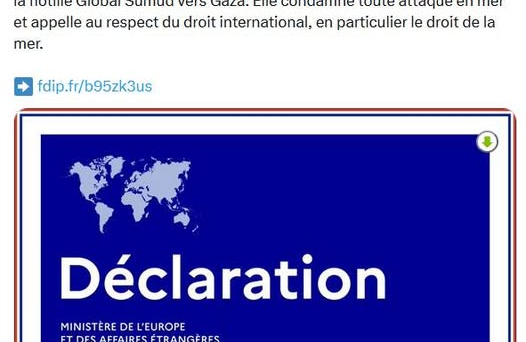Le ministère français des Affaires étrangères a publié mercredi soir un communiqué de pacotille sur la Flottille et les dangers qui menacent celle. Pacotille, parce qu’aucun engagement n’est pris concernant la défense des citoyens de nationalité française à bord des navires. Et, à la différence de l’Italie et de l’Espagne, Paris se garde d’annoncer l’envoi […]