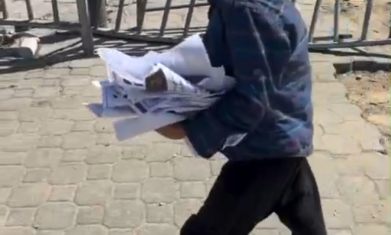 Les enfants de Gaza ramassent les tracts largués par l’armée d’occupation israélienne, qui ordonne aux familles palestiniennes à se déplacer vers le sud, et les réutilisent comme combustible pour cuisiner au feu. Ils n’ont pas les moyens de partir. Alors ils seront bombardés par Netanyahou et Trump. CAPJPO-Europalestine
