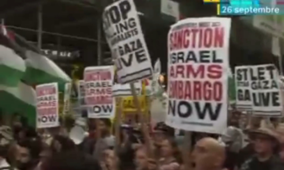 Grande manifestation à New York à la suite de l’intervention de Netanyahou à l’Assemblée générale des Nations unies. CAPJPO-Europalestine