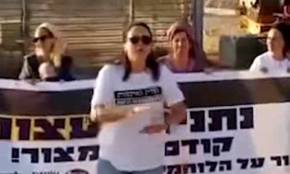 “Écrasez leurs os !” Ces proches de soldats israéliens, postées à l’entrée de la bande de Gaza, encouragent ces derniers à continuer le génocide. CAPJPO-Europalestine