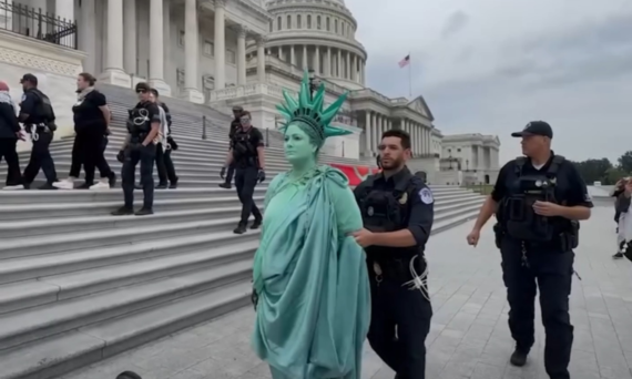 La police arrête des militants dénonçant le génocide à Gaza lors d’un rassemblement devant le Capitole, à Washington DC. L’événement s’est tenu dans un contexte de colère internationale croissante face à la guerre génocidaire menée par Israël contre Gaza CAPJPO-Europalestine